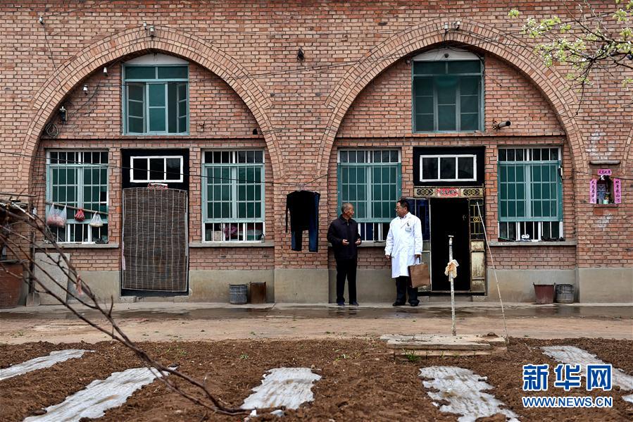 4月19日,在山西省平顺县苗庄镇苗庄村,崔成斌在询问一位村民的身体情况。新华社记者詹彦摄