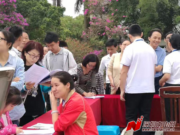 尽管上午下着小雨,但南山区各公办中小学准备充分,紧张有序的开展着招生宣传工作,各宣传点人头攒动,工作人员不仅为家长解答详细的招生政策,还招呼着现场的小朋友,同他们进行互动并介绍学校的一些基本情况。