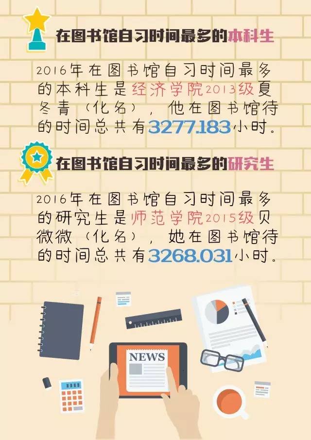 如果一学期以20周来计算,一学年就是40周,而上述两位同学每周至少有4.7天是待在图书馆里的!