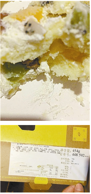 新鲜诱人的水果蛋糕,让齐小姐和家人食指大动。很快,齐小姐一家人吃完了大部分蛋糕。这时,齐小姐却突然在剩余的蛋糕中发现:蛋糕胚中有一根来历不明的人体“毛发”,这根毛发不长但有些弯曲,“绝对不是头发,看着实在是太恶心了!”