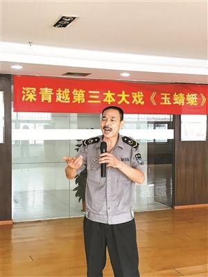 “爱唱”,是梅林街道文化站保安队队长罗献臣的微信名。从武生到红脸,从梆子到京剧,55岁的老罗都能唱两嗓。最近,他还学上国标舞、水兵舞,“现在我这微信名又得改咯!”老罗笑了笑说。