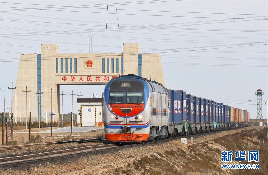 首趟中欧班列(伦敦-义乌)从中国阿拉山口口岸入境(4月24日摄)。新华社发(张永恒 摄)