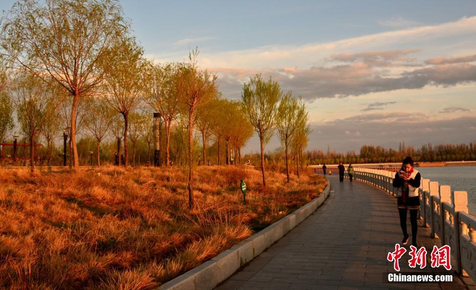 4月24日,甘肃酒泉市上空出现壮美“火烧云”盛景。当日下午,酒泉市市区突降大雨,雨后夕阳落山时,丝路公园上空的霞光和湖水里的倒影连成一片,格外美丽壮观。万宗平摄
