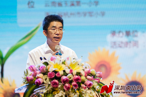 在会上,范坤高度赞扬南山教育,他说南山区是广东省第一个教育强区、第一个推进教育现代化先进区,近年来在教育督导、课程改革、职业教育、教育国际化和信息化建设等方面形成了区域特色,在全市、全省乃至全国产生了较大影响,为推动深圳教育改革和发展做出了重要贡献。南山区第二外国语学校虽然创办时间不长,但是发展很快,已经成为南山区、深圳市的一所优质名校,取得了很好的办学成绩和影响,获得了广大学生和家长的认同和喜爱。范坤书记说小学教育是国家义务教育的起点,是整个教育事业的基础,良好的小学教育,对提高国民素质、培养各级各类人才、促进孩子一生的全面发展具有重要而长远的作用,要提高整个教育事业的质量,必须从小学教育做起。本次研讨会对深圳也是一次难得的学习机会,对深圳推进基础教育创新发展、促进学生提升综合素养具有重要作用。认真学习各地的先进经验, 不断提升基础教育质量和水平。