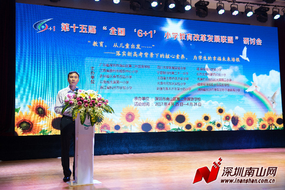 深圳新闻网讯 (记者 王志明 通讯员 王丹) 4月26日上午,第十五届“全国6+1小学教育改革发展联盟研讨会”在南山二外召开,来自全国14所知名小学的校长和教师代表汇聚深圳南山,和南山二外的老师们一起,智慧共享,思想碰撞,聚焦学生核心素养培养,共同研讨小学教育改革发展。深圳市委教育工委副书记范坤、南山区教育局副局长陈登福做了重要讲话。