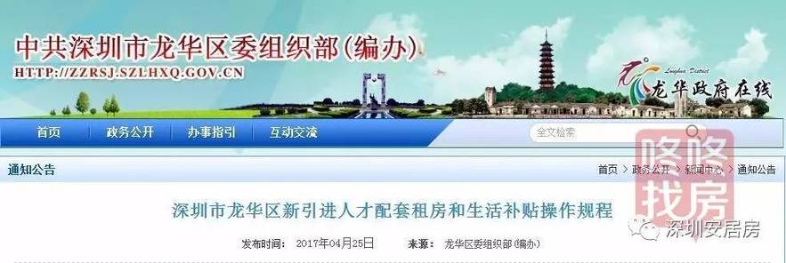 深圳市龙华区新引进人才配套租房和生活补贴操作规程