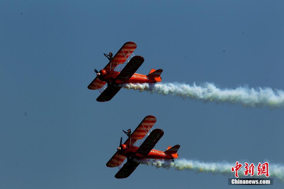 4月27日,2017郑州航展在河南郑州上街机场开幕,从世界各国40多支特技飞行队遴选的14支顶级飞行队,上演了一场场别开生面的空中特技秀。中新社记者王中举 摄
