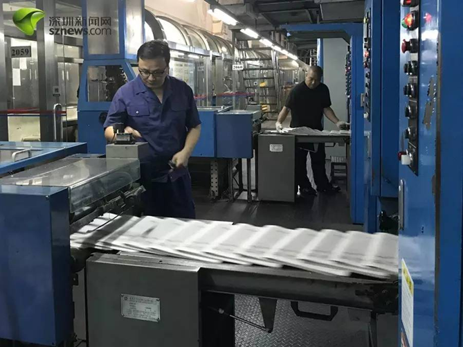 凌晨3点20分,徐小东还穿梭在机台和传送带上,一会儿在机台上进行排版操作,一会儿去传送带上看看印制的报纸是否有差错。徐小东骄傲地说,“这份工作,最让我感到荣耀的就是把这个新鲜的文化早餐高质量送到读者手上。”