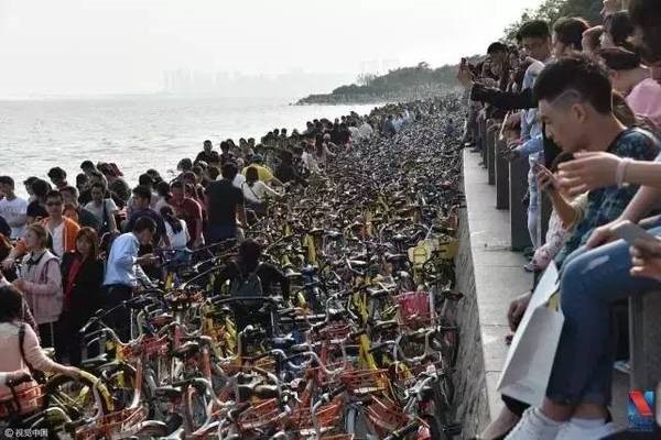 不只是成都,自从共享单车出现一之后,每逢假期,就会发现全国各地的公园和景点都会被黄色、蓝色、橙色的自行车占领,将道路堵得水泄不通。这张图是今年清明假期,深圳湾公园的状况场面。