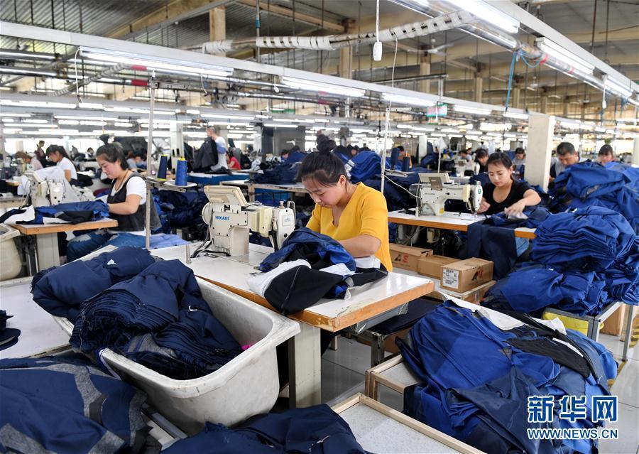 工人在雄安新区容城县津海服装工业园生产车间内工作(4月18日摄)。中国人习惯用“满月”来标注新生命的成长。对于刚刚设立的河北雄安新区,这一个月举世瞩目,生机盎然。 30天里,在这片具有悠久历史、浸润红色传统的热土上,人们一边在不舍昼夜努力守护好“这张白纸”,一边在紧锣密鼓筹备新区规划建设。雄安新区,正在悄然向世人揭开面纱…… 新华社记者 牟宇 摄
