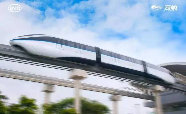 深圳比亚迪自主研发的跨座式单轨列车——“云轨”,