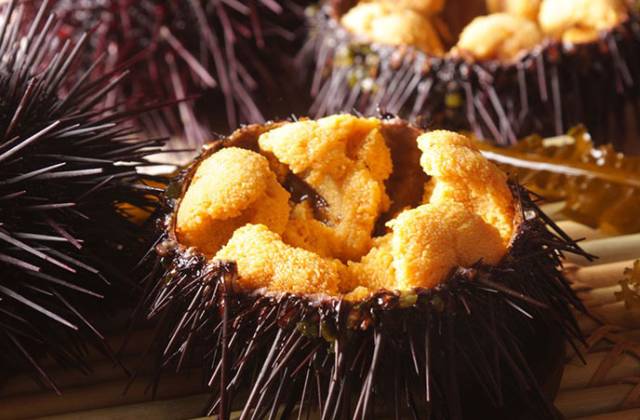 六七月份是海胆生殖旺季,这时将海胆壳掰开,就可看到满满的海胆黄。