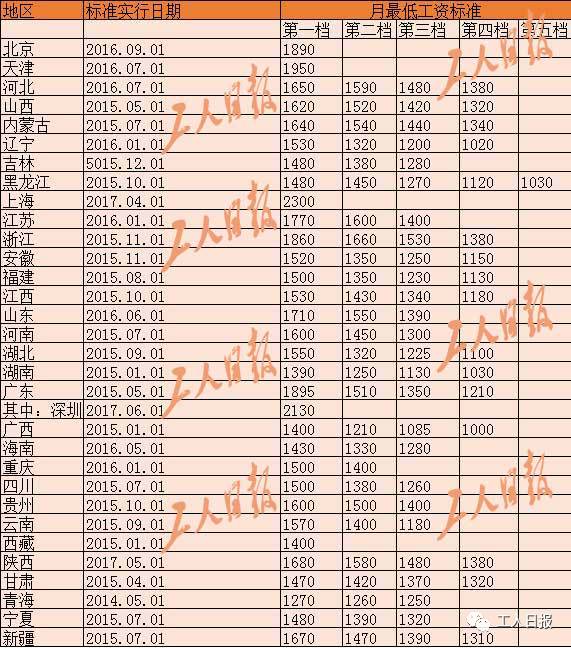 各地最低工资标准