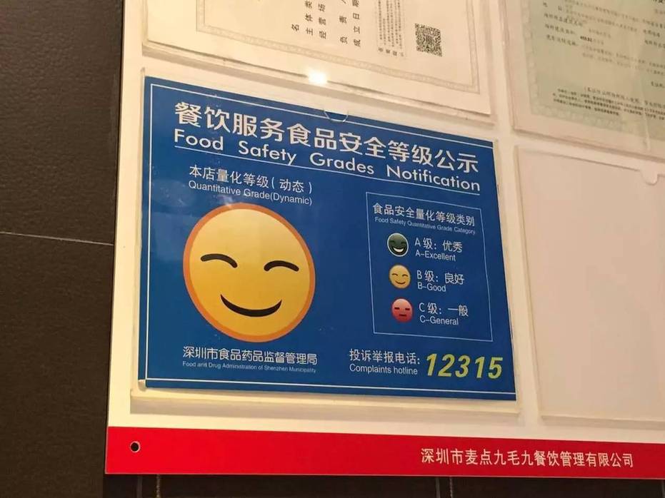 这家九毛九餐厅检查前的餐饮量化等级为B级