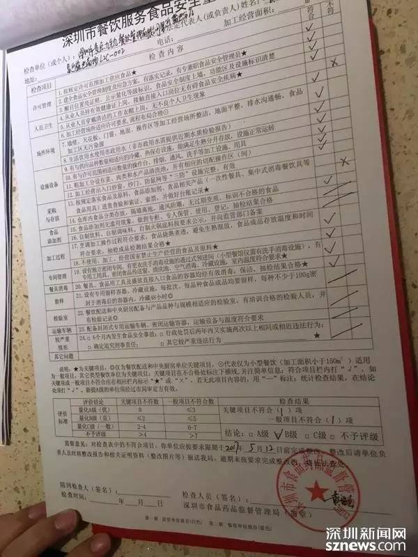 九毛九山西面馆,经过检查,发现一个关键项不符合要求,食品进货票据不齐全,一个一般项不符合要求,部分从业人员未佩戴衣帽,最终餐饮量化等级维持B级。