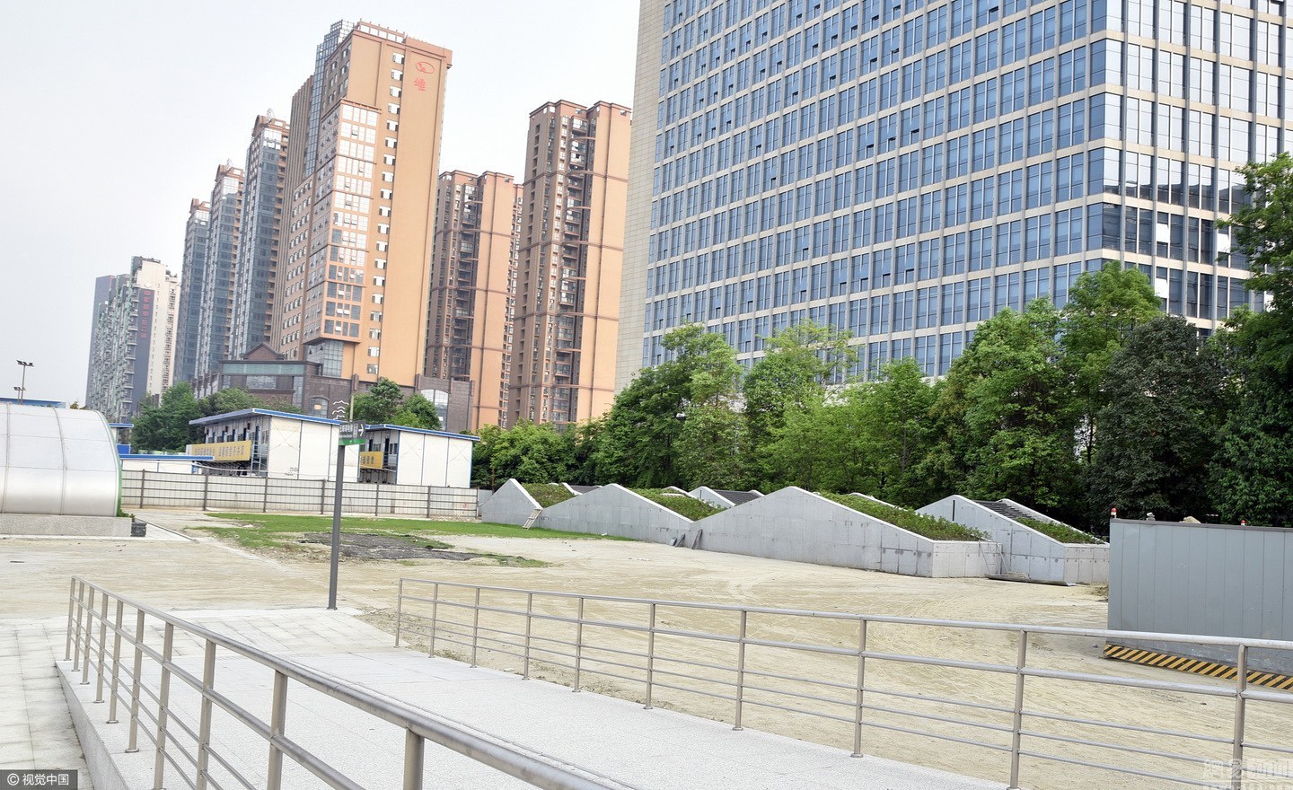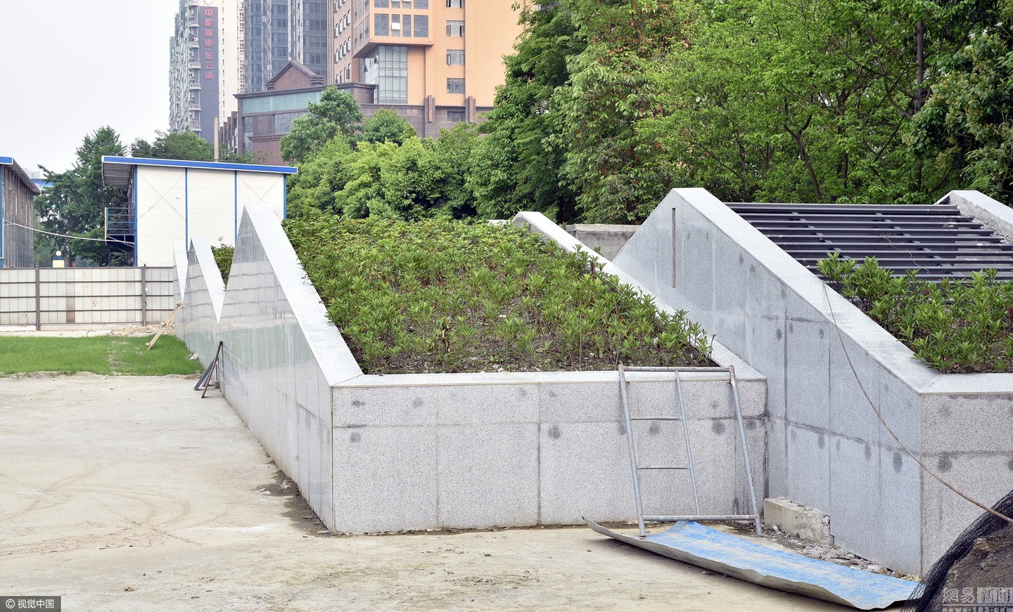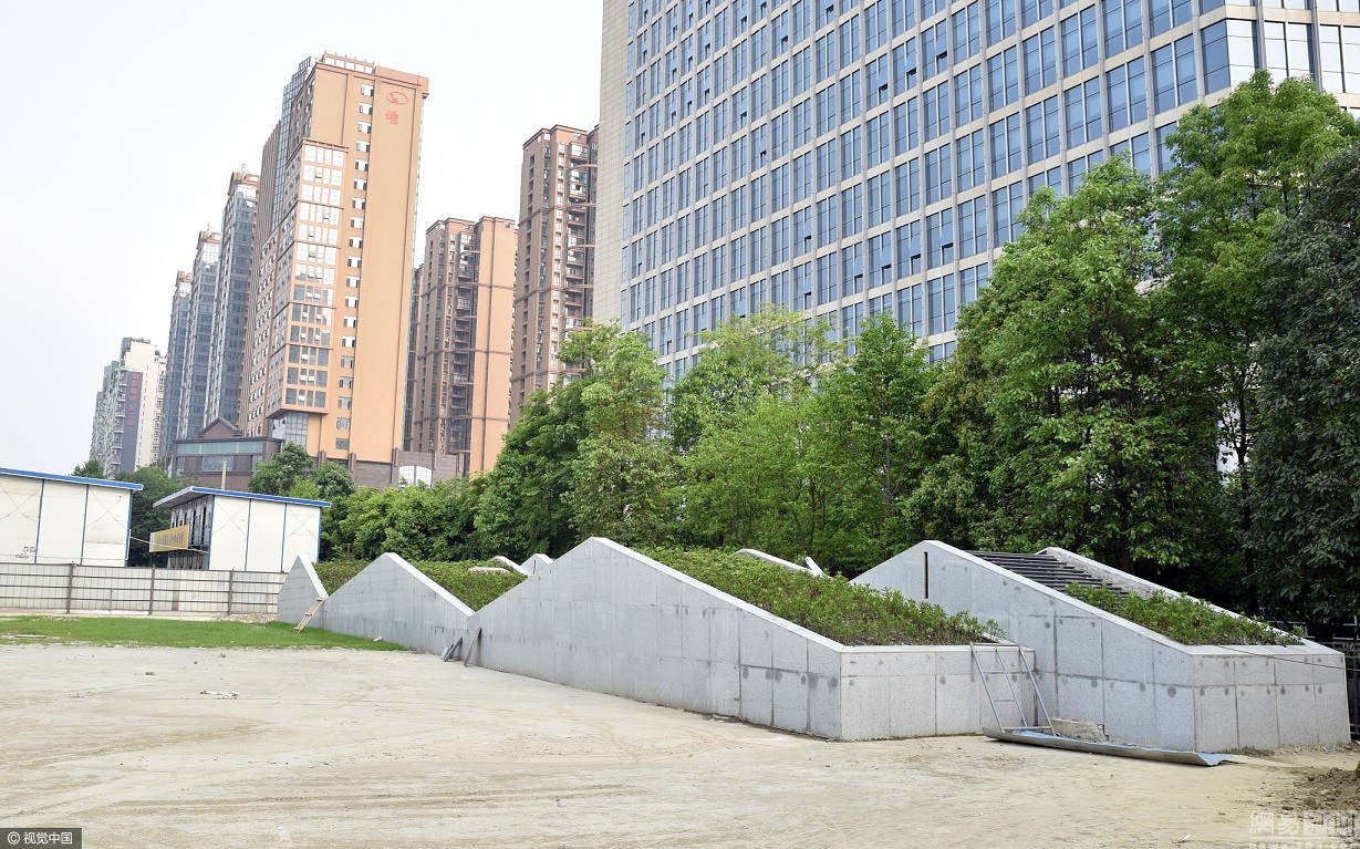 2017年5月2日,成都地铁4号线二期工程光华公园站旁出现奇葩造型景观,有路人称其造型怪异,犹如几座坟墓竖立在路边。图片来源:视觉中国
