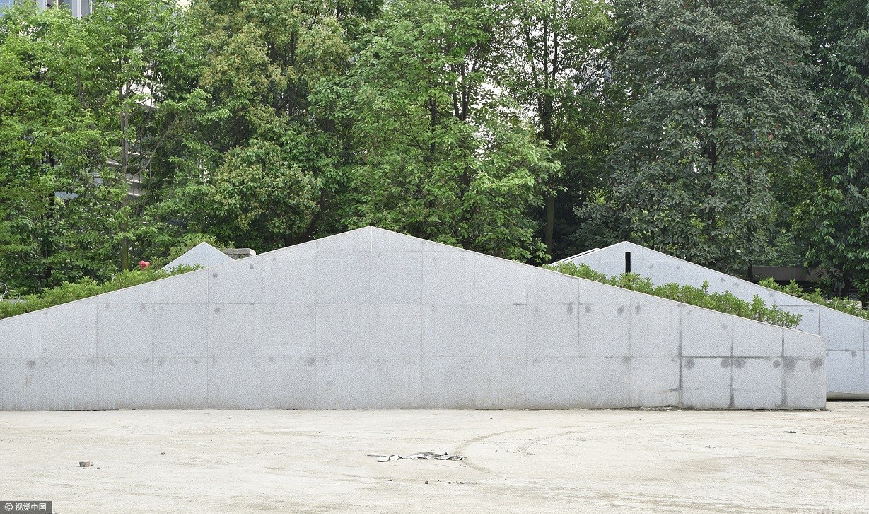 2017年5月2日,成都地铁4号线二期工程光华公园站旁出现奇葩造型景观,有路人称其造型怪异,犹如几座坟墓竖立在路边。图片来源:视觉中国