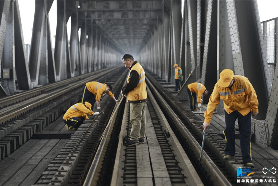 假如,把60年前的大桥比喻为呱呱落地的婴儿,把60年后的大桥比喻为历经风霜的“天命”壮汉,那么,少为人知的养桥工人,就是悉心呵护大桥健康成长的“保姆”。新华网欧阳小洁摄
