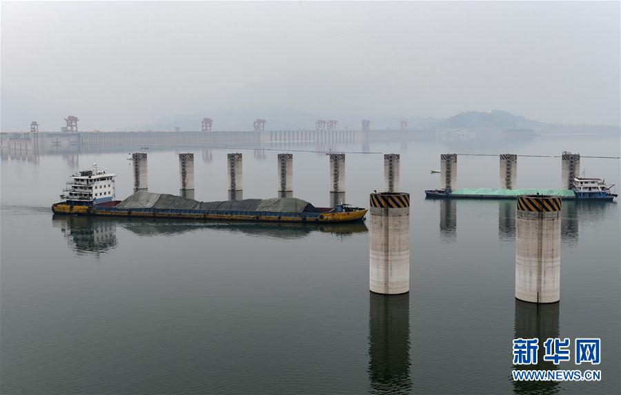 5月2日,船舶有序行驶在三峡五级船闸上游引航道。 5月1日,中国长江三峡集团公司发布消息,三峡船闸连续14年实现安全、高效运行,累计货运量突破10亿吨,有力支持了长江经济带战略的实施。三峡集团发布的最新统计显示,三峡船闸累计运行12.87万闸次,通过船舶73.3万艘次、旅客1181.2万人次,货运量达10.01亿吨。三峡船闸自2003年投入运行以来,过闸货运量不断增加,2011年首次突破亿吨,提前19年达到设计能力。新华社发(郑家裕摄)