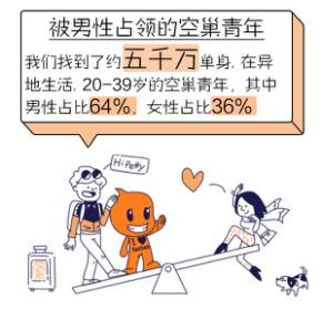 据阿里数据披露,目前中国“空巢青年”群体已超过半亿,而中国人口数超过5000万的省市为十个,也就是说,“空巢青年”的总数近乎中国第11大省市的规模。