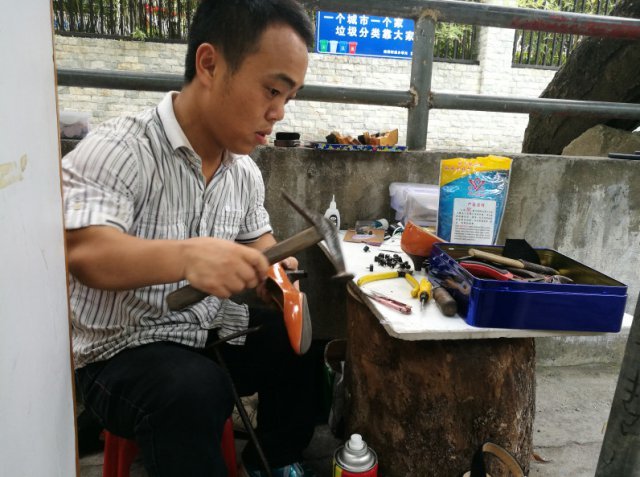 汪苏明的乐观开朗也渗透到工作中,并用这种积极的态度影响着周围的客人。有一次,一位女顾客的小孩当着汪苏明的面问:"妈妈,这个叔叔为什么长得这么奇怪?"女顾客立刻制止孩子,要跟汪苏明道歉。但汪苏明却摆摆手笑着对小男孩说:"叔叔长不高是因为叔叔小时候吃多了零食,你要想长高高变帅气,就要多吃饭菜多吃肉,少吃零食。"小男孩听完后非常认真地告诉他妈妈:"我以后会好好吃饭的"。一番对话下来,那位年轻的妈妈非常感动,连连向汪苏明道谢。"因为我已经完全接受自己了,所以我可以拿自己的短处去委婉地给别人带来好的影响,这很有意义。"汪苏明说。没活干的时候,汪苏明会休息一下,抬头看看远处的天空和高楼。顺着汪苏明的视线看过去,记者发现地王大厦绿色的身影跃然于眼底。身旁的汪苏明笑了笑说:"我这也算是实现了在地王大厦下工作的誓言。"汪苏明现在有空还常常会去看望自己的恩师,还有刘宏等帮助过他的好朋友们。去年,汪苏明也免费收了一个流浪的残疾人做徒弟,教他修鞋,成功帮助这名流浪汉自食其力。这让汪苏明感受到"自己的手艺是有价值的"。今年33岁的汪苏明在努力工作之余,也在思考着未来如何把修鞋事业做大,如何帮助更多残疾人学到一门谋生的技术。不过近期,汪苏明想先实现一个小梦想——攒钱把家人接来深圳玩一趟。(记者秦瑶编辑刘小涛)