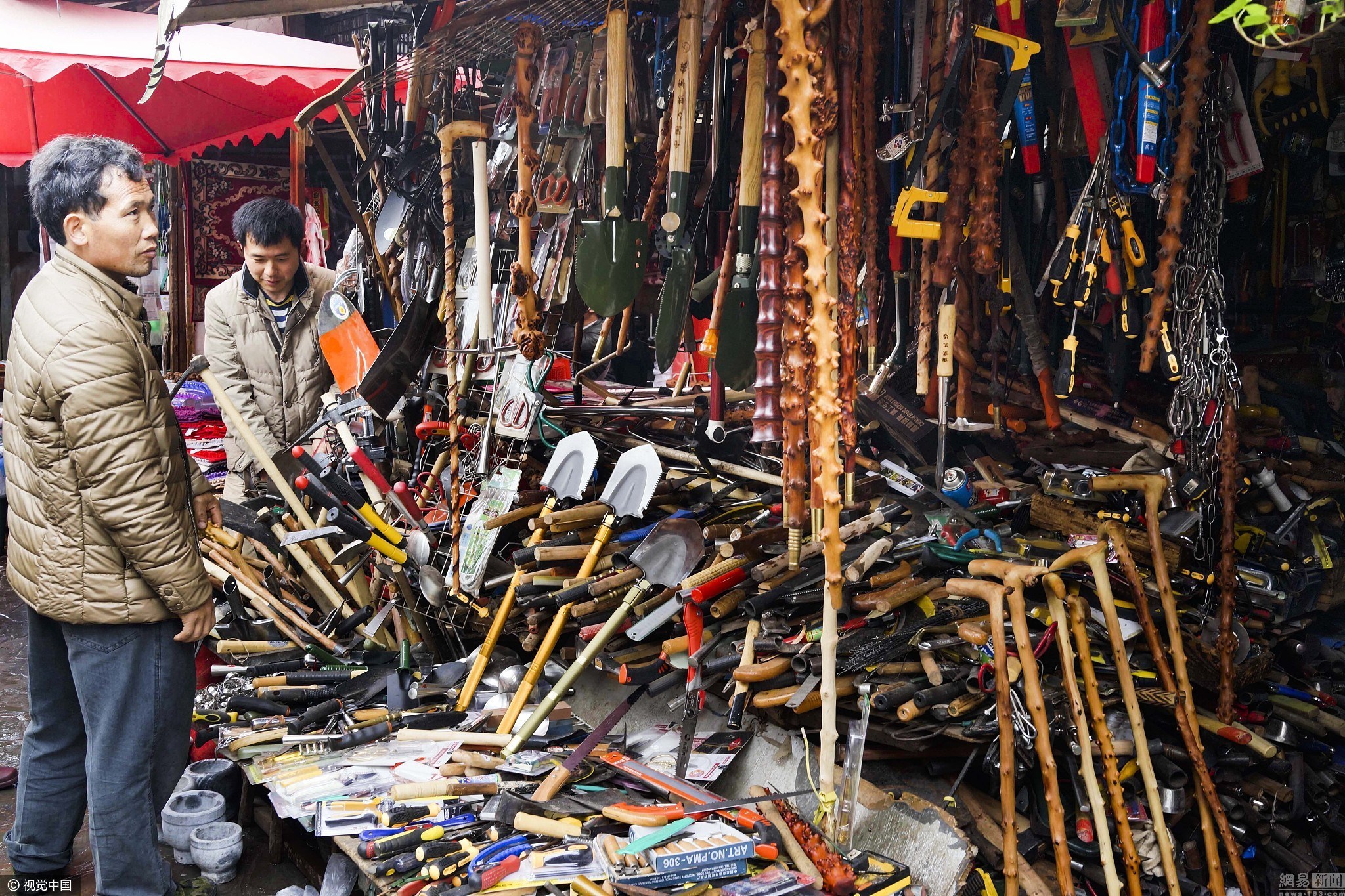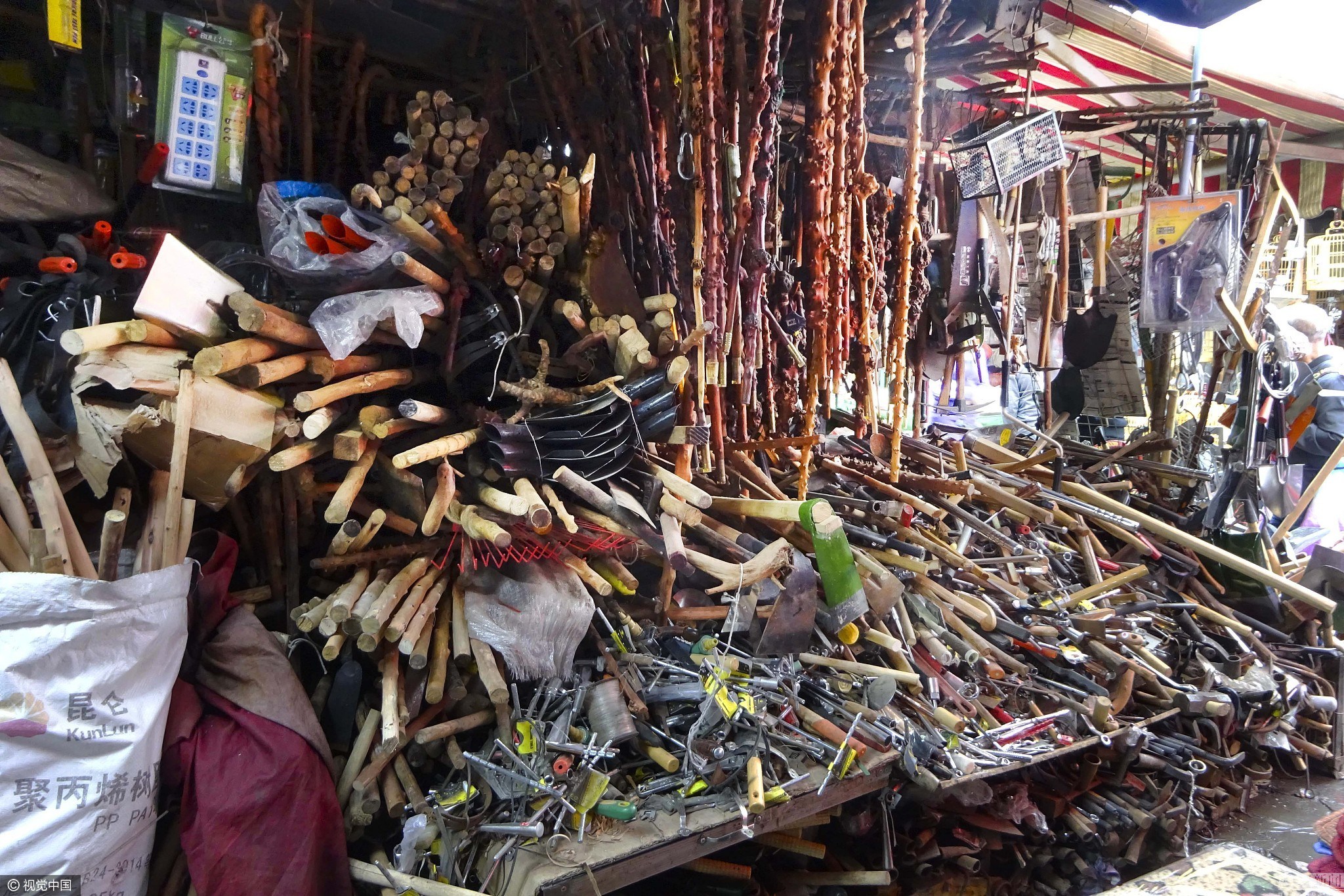 2017年5月7日,,贵阳市南明贵纲花鸟市场,一家五金杂货铺。这家五金杂货铺虽然只有几平方米,但从地下到房顶,基本是塞得空间甚微。视觉中国供图,谢绝转载