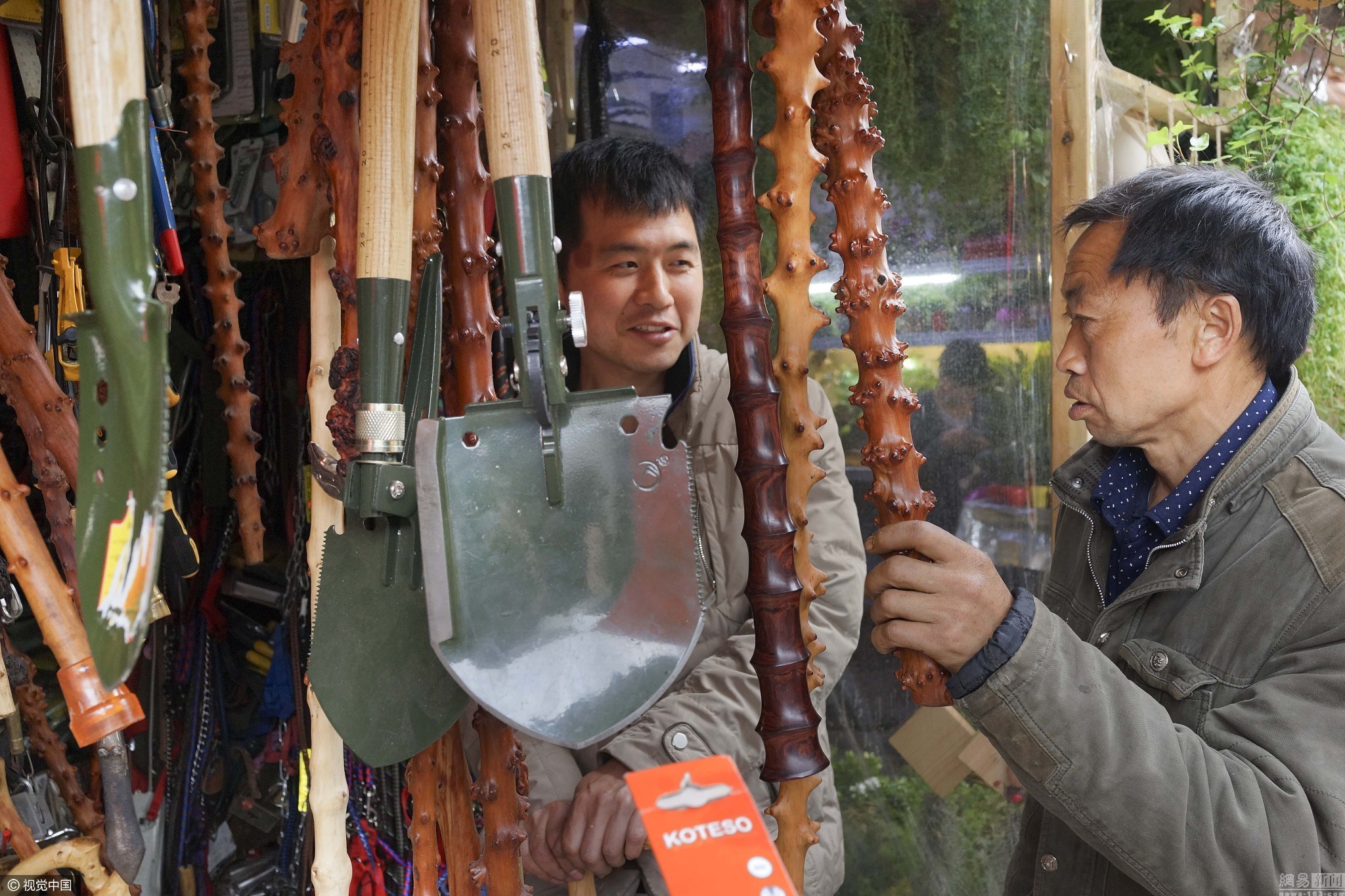 2017年5月7日,,贵阳市南明贵纲花鸟市场,一家五金杂货铺。这家五金杂货铺虽然只有几平方米,但从地下到房顶,基本是塞得空间甚微。视觉中国供图,谢绝转载