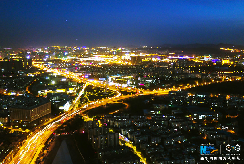 夜幕下的立交桥如一条流动的金色丝带。新华网发(席航飞 唐杨摄)