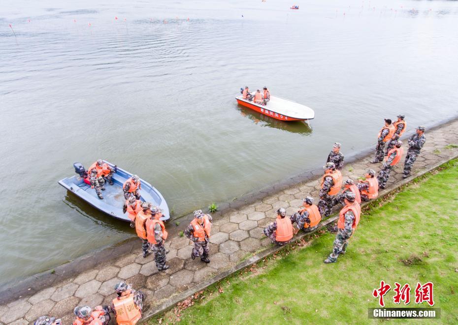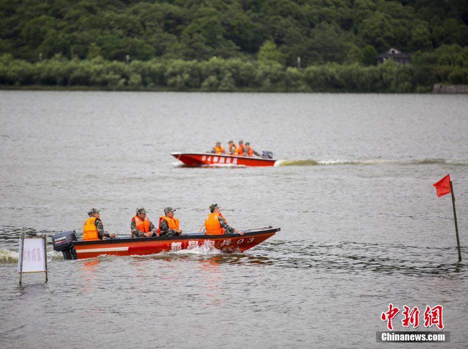 5月8日,在鄱阳湖畔的江西省都昌县东湖,参演民兵在演习水面救援。“五一”过后,江西境内降雨增多。当日,该县武装部组织50名骨干民兵在鄱阳湖都昌东湖水域开展抗洪抢险水上演练,在为期一周的演练中,民兵们围绕冲锋舟驾驶操作、旗语指挥、水中编队以及复杂水况下的打捞、救护、转移等课目进行。傅建斌 摄