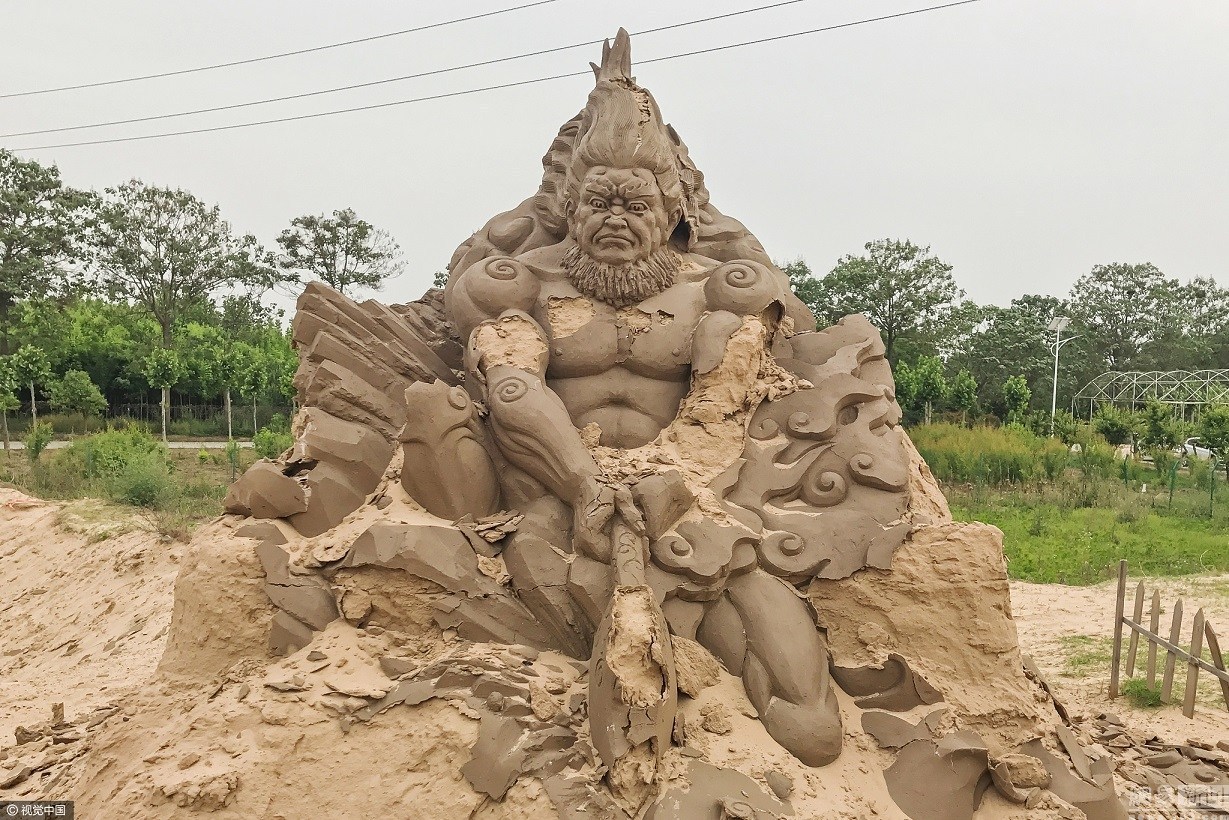 据了解,此沙雕园为16年建造,当时在郑州市曾掀起一股沙雕风,很多市民慕名前来参观。后因无人看管,沙雕均遭受到了不同程度的破坏,有自然侵蚀,也有人为因素。图片来源:视觉中国