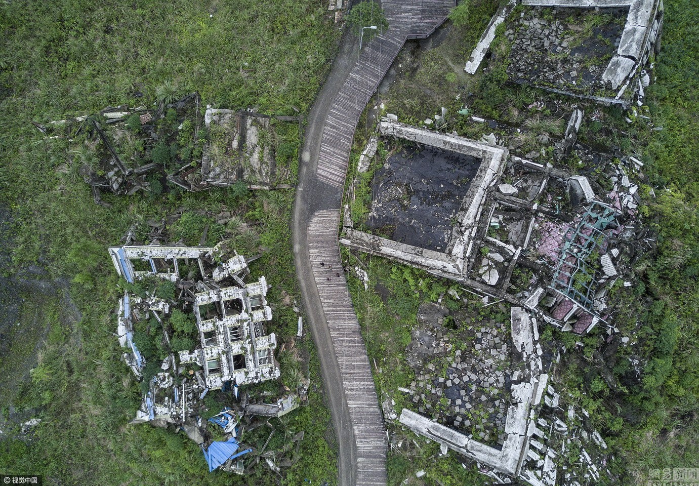 如今北川县城已成为地震遗址景观,在损毁的楼房之间修有一条栈道,供游客穿行。