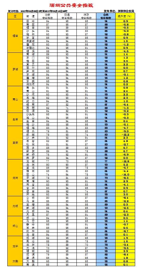 深圳新闻网讯 深圳市公安局围绕市委市政府“城市管理治理年”工作部署要求,借鉴国内其他城市的成功做法,于2016年4月5日开始,每周通过《深圳特区报》、《深圳新闻网》、市公安局门户网站、公安微信、微博,向社会发布一次深圳公共安全指数,保障市民群众知情权、监督权,引导社会各界广泛参与 “平安深圳”建设。