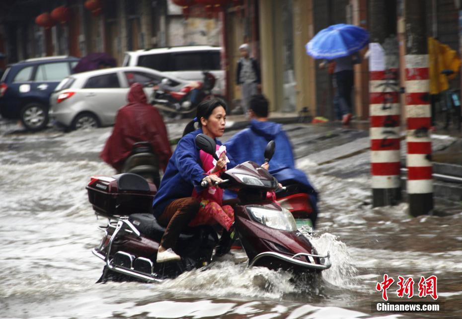 暴雨夜袭广西 街道成“河”民众淌水出行