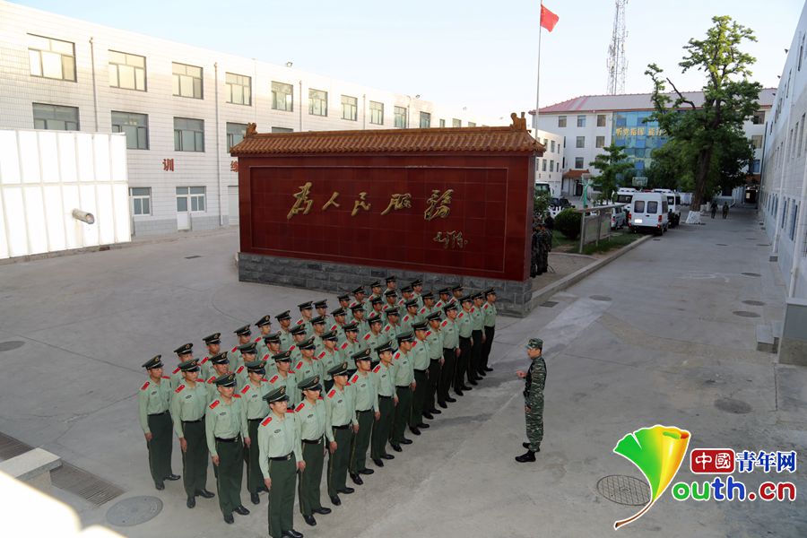 早上6时,中队长金岩松传达执勤任务,给执勤哨兵强调纪律提出具体要求。中国青年网通讯员 姜润邈 摄