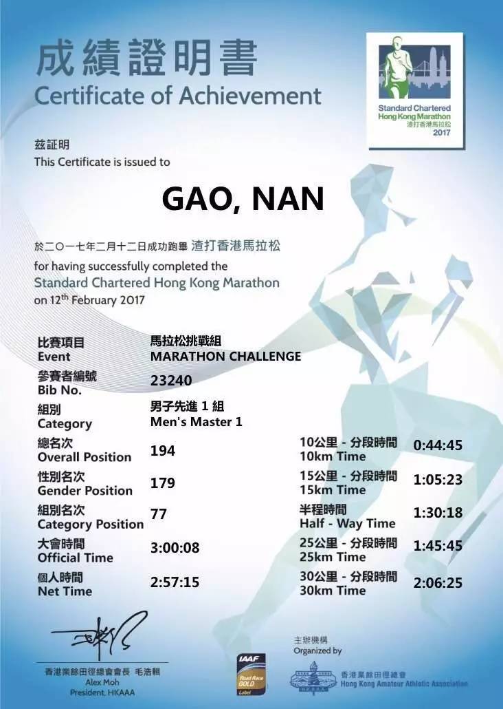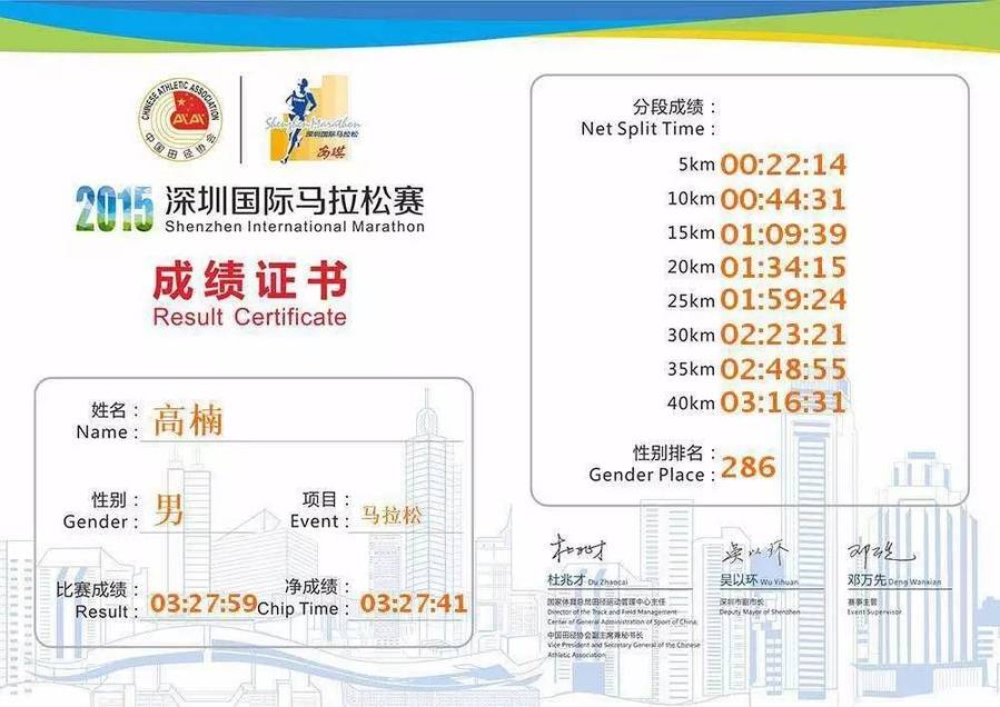 3个月后的深马,高楠的完赛成绩是3小时27分!兑现了他9个月前的“豪言壮语”!
