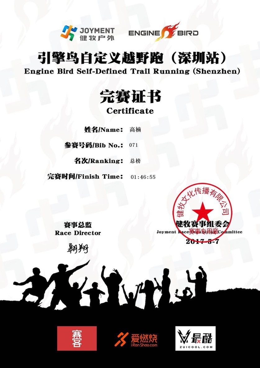 2017引擎鸟自定义越野跑深圳站,冠军!