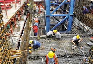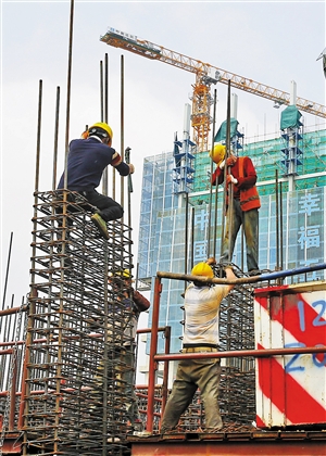 近日,工人们正在前海一工地进行高空作业。 深圳商报记者 施平摄