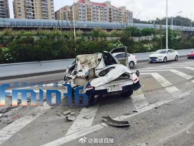今天中午1点左右,福州三环路淮安大桥往福飞路方向下桥处发生一起交通事故,一辆水泥罐车侧翻后压到一部警车,警车受损严重。据了解今天出车是一位民警和一位协警,在14:10分左右已被救出,没有生命危险,已经送往省立医院进行救治,水泥罐车的司机没有受伤。