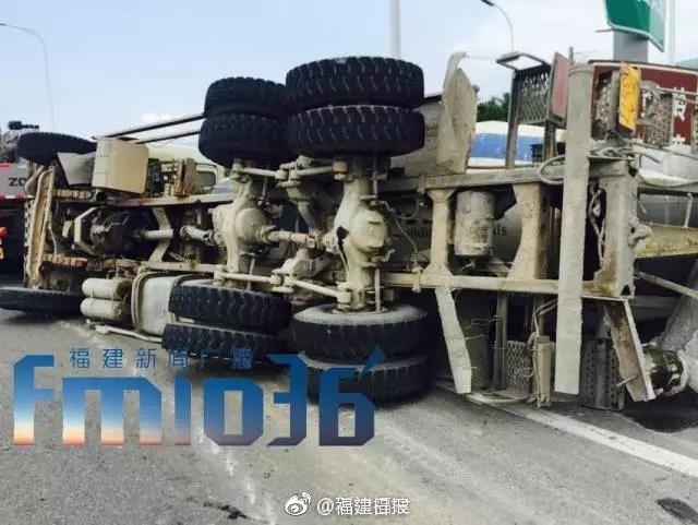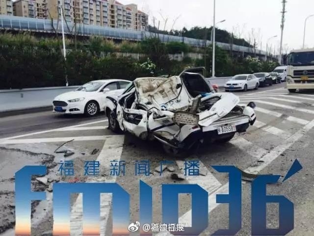 今天中午1点左右,福州三环路淮安大桥往福飞路方向下桥处发生一起交通事故,一辆水泥罐车侧翻后压到一部警车,警车受损严重。据了解今天出车是一位民警和一位协警,在14:10分左右已被救出,没有生命危险,已经送往省立医院进行救治,水泥罐车的司机没有受伤。