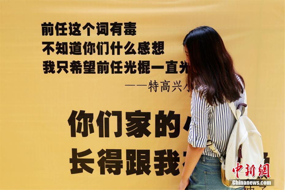 5月18日,在浙江宁波某商场内,近百条“致前任”留言贴满了墙壁和地面,引发不少市民驻留围观。据工作人员介绍,这些句子来自网络征集,最终筛选了99名网友留言,希望在“520”这一网络情人节中,引发人们对爱的共鸣。尤勤勇摄