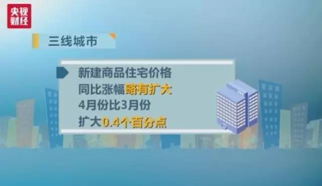 三线城市新建商品住宅价格同比涨幅略有扩大,4月份比3月份扩大0.4个百分点。