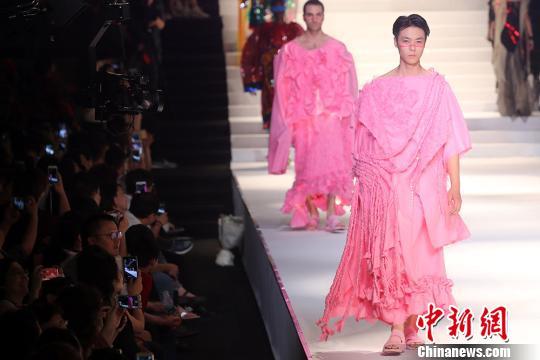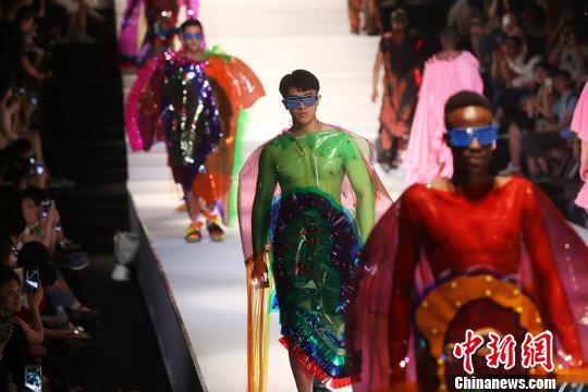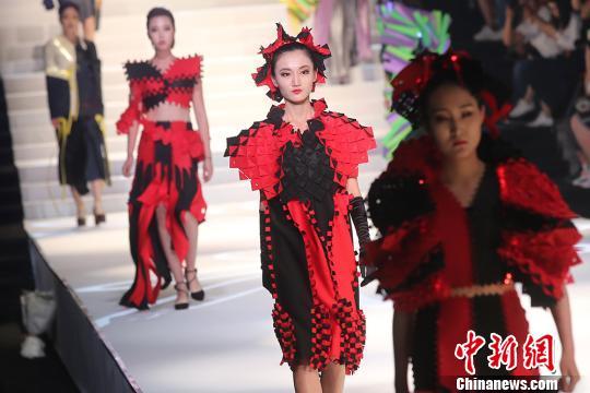 5月20日晚,2017南京艺术学院毕业展演“嘉年华”露天时装秀在该校南大门上演,轮番登台的模特尽情展示设计学院毕业生们的服装设计作品,完美诠释了经典与流行、传统与现代的碰撞。来源:中国新闻网视觉中国