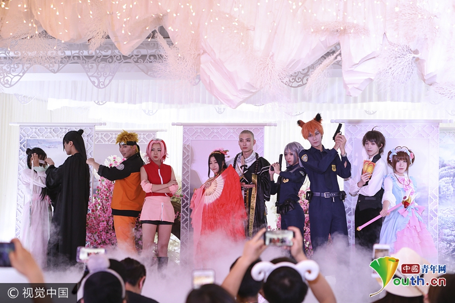 2017年5月20日,北京五对Cosplay爱好者装扮成动漫和影视剧中的经典形象,举办了一场COSPLAY集体婚礼"。