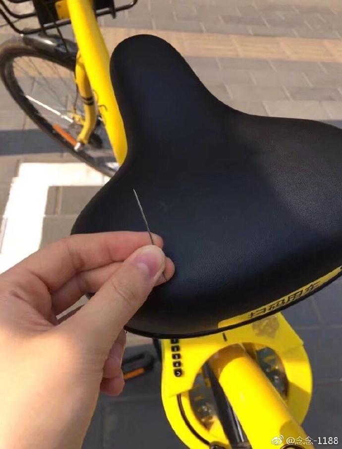 冒冷汗!网友爆料:深圳共享单车坐垫被插针