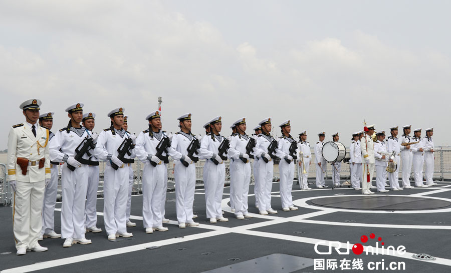 中国海军官兵列队告别(洪荃诠 摄)