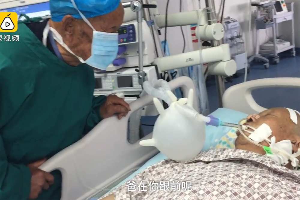 5月19日下午,庆阳市镇原县屯字镇党委赵书记表示,经初步核查发现,老人的家境很困难,属于贫困户。考虑到老人目前的现状,屯字镇镇政府将向有关部门上报材料,尽快为老人解决1000元的临时救助,与此同时,还将在低保等方面给予帮助。图为80岁的朱令宽在看望儿子。