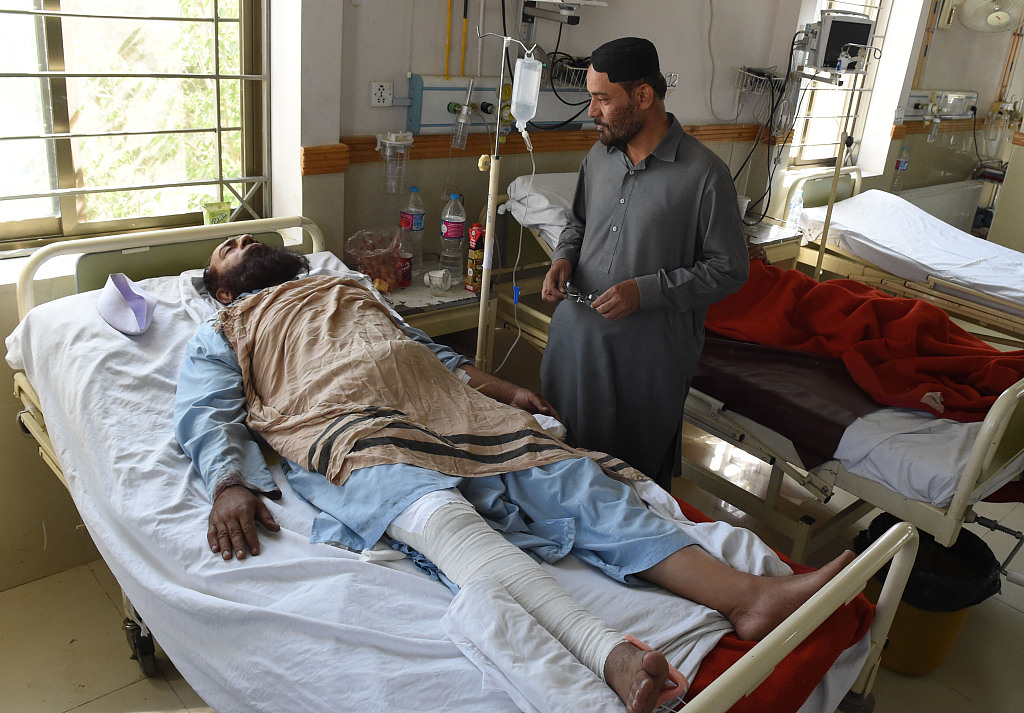 在绑架事件中受伤的巴基斯坦人在医院接受治疗。