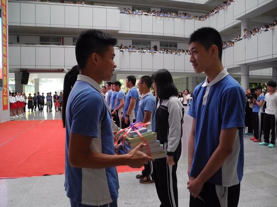 记者发现,在每一个高三班级的队列前,都摆放着一堆写满了笔记的复习资料。该校校长鲁江告诉记者,这些复习资料很有价值,高二的学生复习时可以从中得到不少收获和启发,为此,学校并不主张考生们在考前将资料抛弃,而是将其赠送给学弟学妹。为此,在这个壮行仪式上,特意安排了高三学长们则为学弟学妹赠送高考复习资料的环节,先赠送部分已经不使用的复习资料,待高考结束后,再集中整理送出。