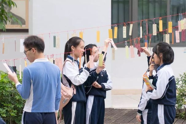 除了与“重本熊”合影外,二外还举办了心愿书签活动,让学生们把心愿写到书签上,内容或轻松诙谐,或活泼励志,为自己也为高三的学长学姐们加油鼓劲、送去亲切的祝福,串串随风飘扬的书签也成为了二外校园里的一道靓丽风景。此外,二外还在上周举行了一年一度的喊楼活动,学弟学妹在高三学长的宿舍楼下,一遍遍简单重复着“高三加油·二外必胜”的口号,为高三学长们送上美好祝愿。