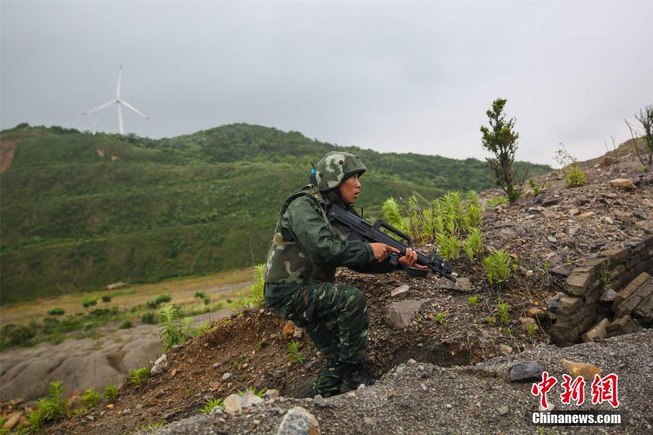 5月24日,特战队员对山林地进行搜索。当天,武警浙江总队组织直属、舟山、宁波、台州等四个支队特勤分队在舟山开展第二季度“魔鬼周”极限训练。据悉,此次“魔鬼周”训练设置了武装奔袭、山地越野、荒岛求生、夜间行军和各种枪械射击等课目。中新社记者张晓庆 摄